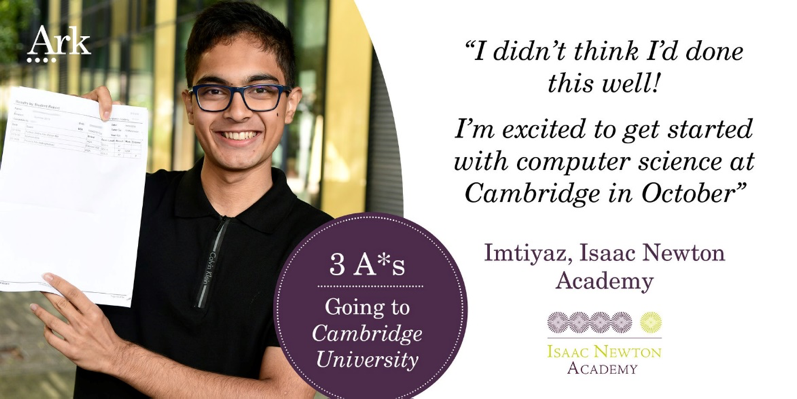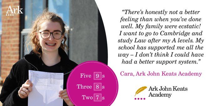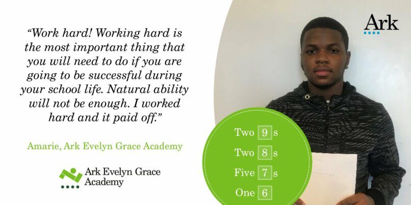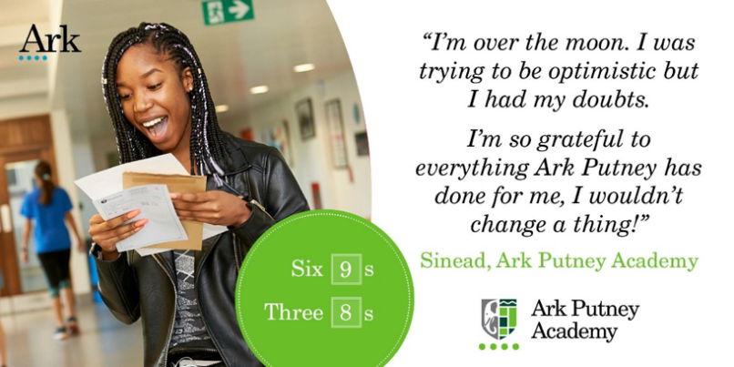 - Ark Globe was the network’s highest-achieving and most-improved sixth form, with a 14pp improvement over last year’s percentage of students achieving 3 or more A*-C (or equivalent).