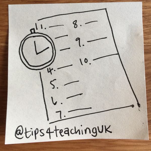 This is a good way to use questions at the very start of my lessons. I create a set of questions based on a topic already studied. Simply put 10 questions on the board and asked learners to write the number of each question alongside the answer. Make each question more challenging than the one before.