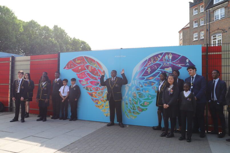 Today, students and staff at Ark Globe Academy, together with employees from communications agency Brands2Life, unveiled “Globe Wings”, a giant wall illustration outside the school.